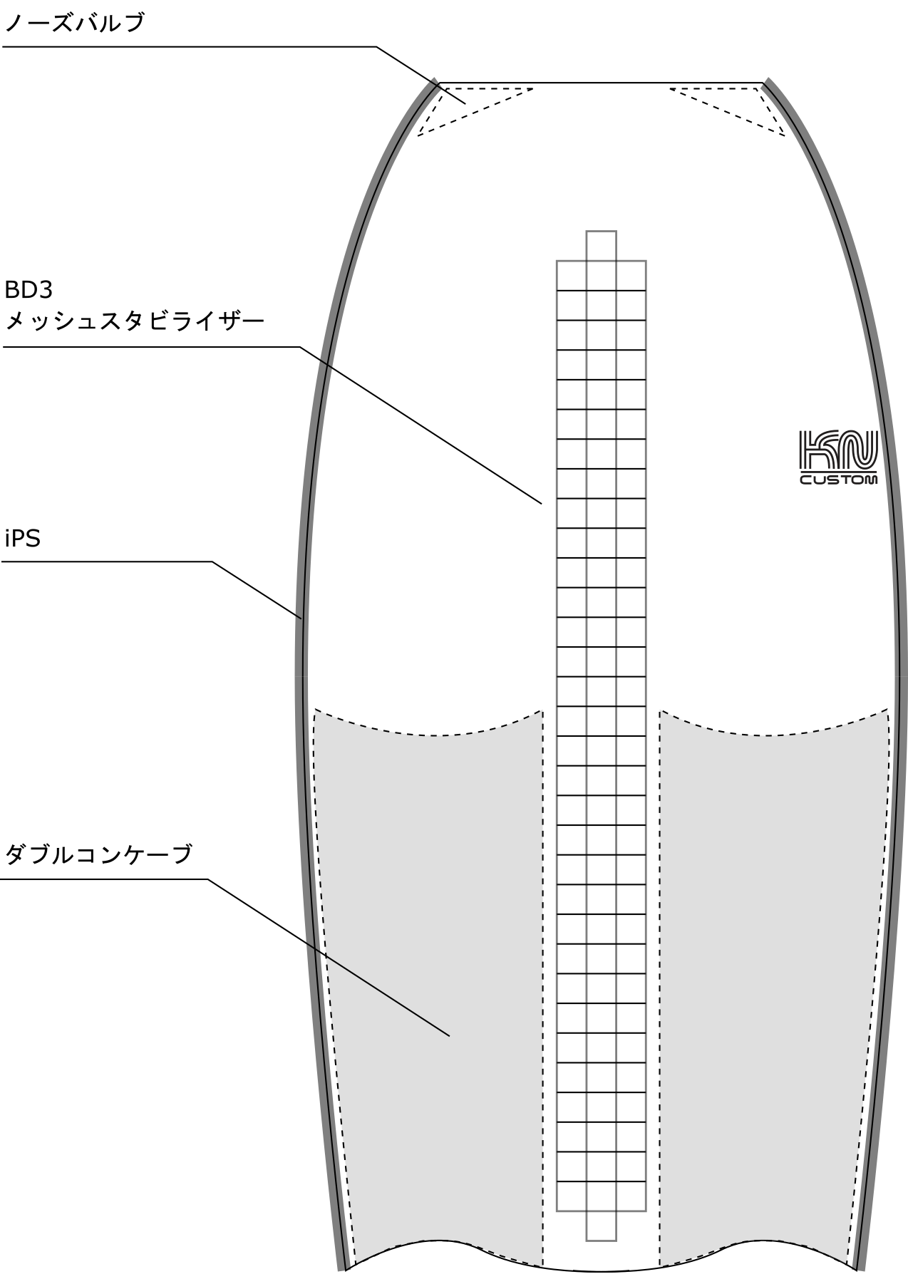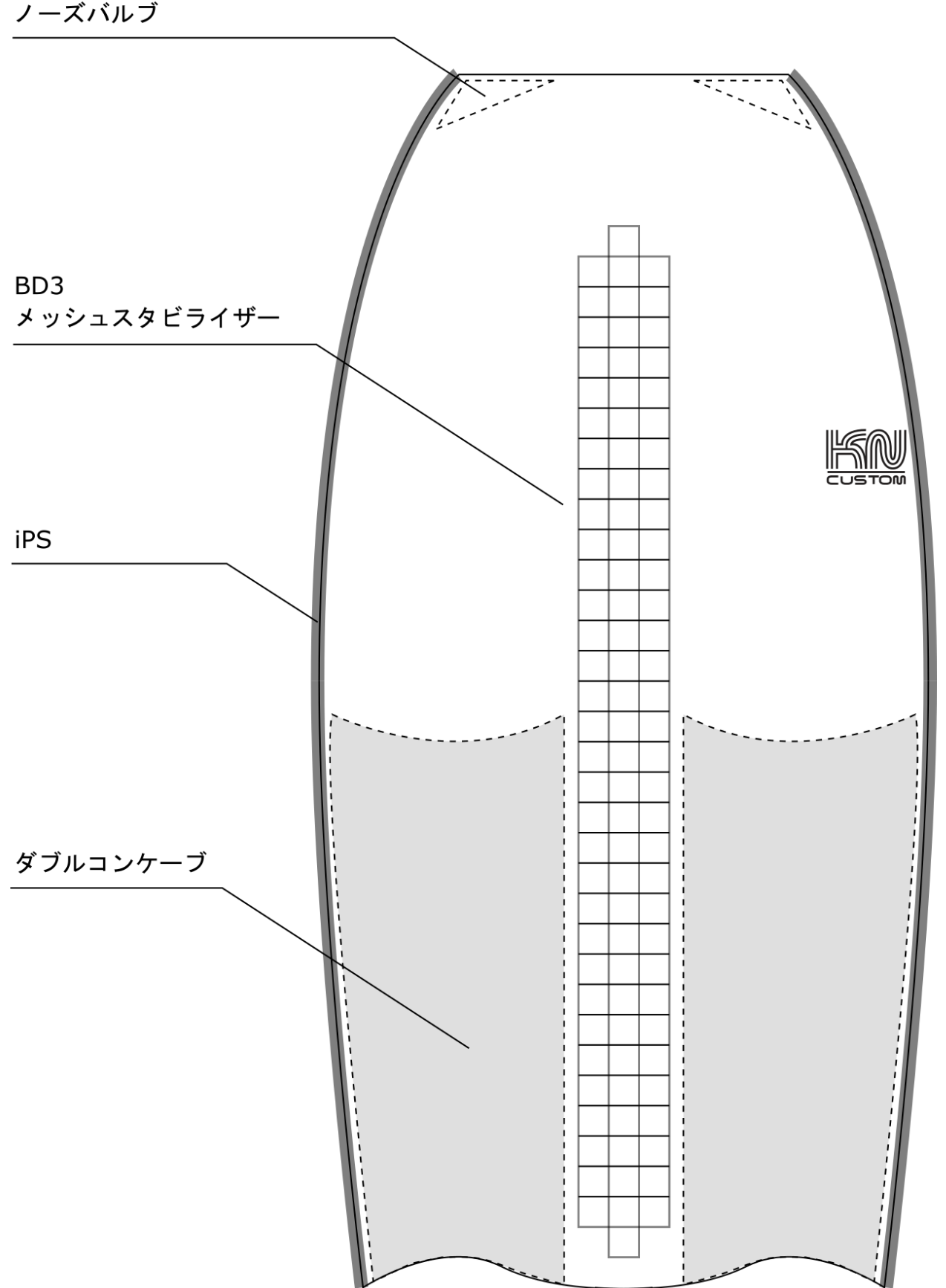 このモデルは張りもあり、しっかりとフレックスするメッシュスタビライザーとiPSを装備しています。小波からパイプラインのような大波まで、あらゆるコンディションで安定した性能を発揮することは井上美彌プロによって証明されています。カスタムボードについて、”自分にはまだ早いのでは?” ”そんなレベルではないのでは?” と考えている方もいるかもしれません。しかし、カスタムボードを作るのに早すぎる、レベルに合わないということは決してありません。レベルに合わせた最良のボードを使うことで、上達が加速的に早くなるでしょう。